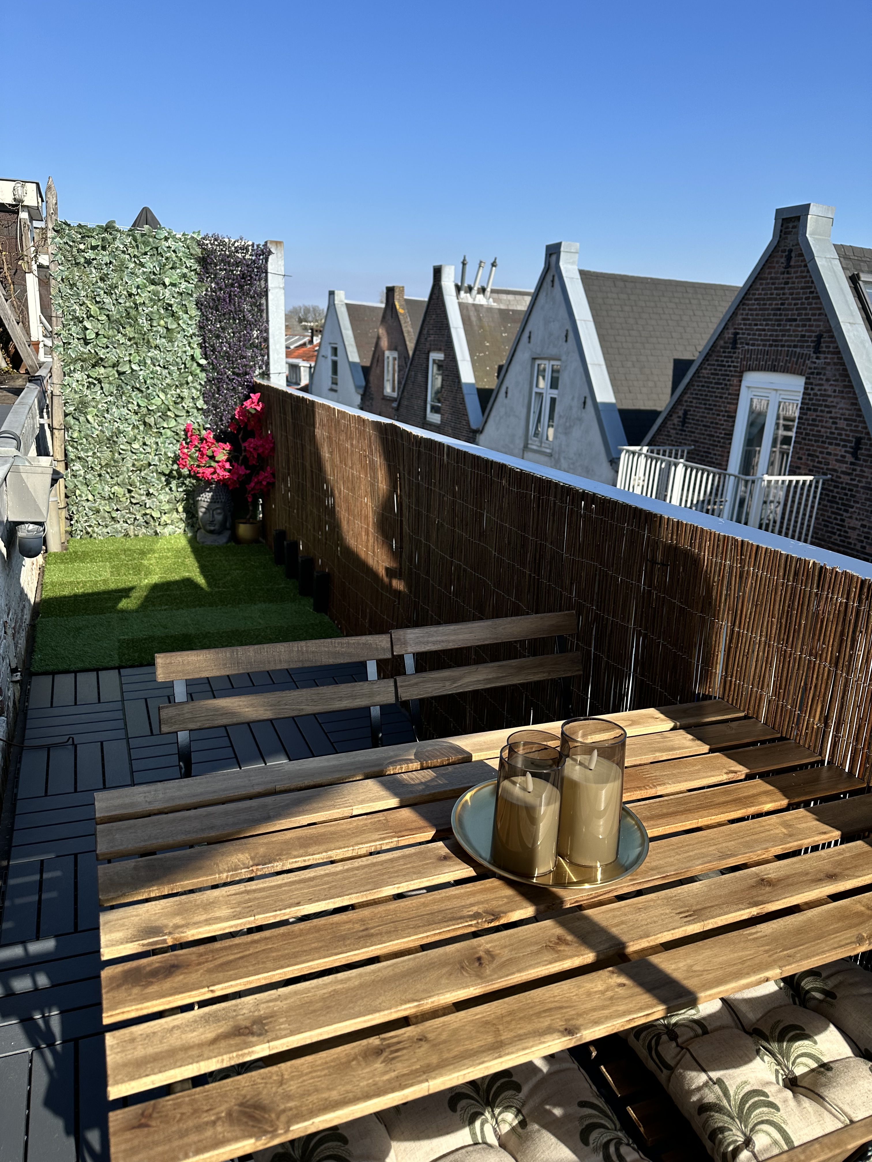 Think of your balcony floor as a blank canvas. Swapping out old tiles or bare concrete for wooden decking tiles, weather-resistant rugs, or even artificial grass can instantly soften the space and set the tone for relaxation.